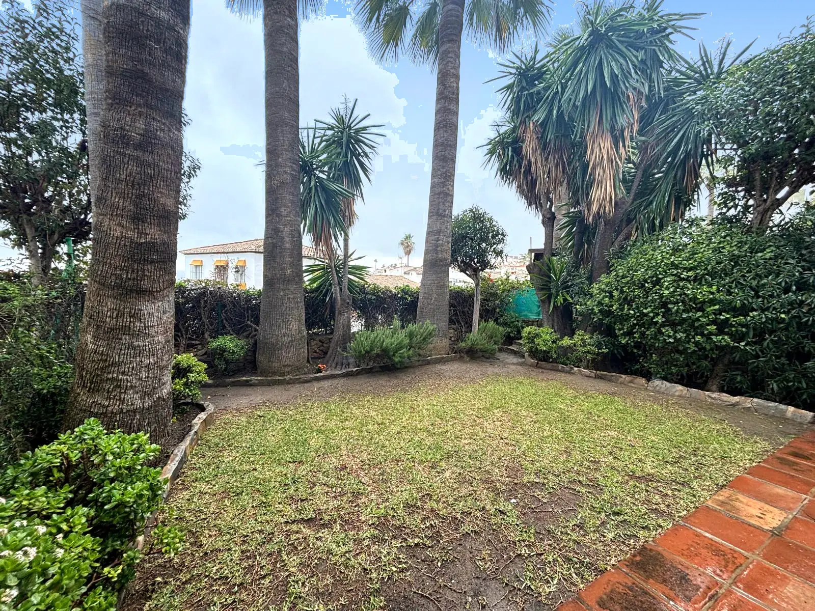 La cocina independiente suma funcionalidad al conjunto y refuerza un uso cómodo en estancias prolongadas o durante todo el año. Las imágenes también permiten confirmar armarios empotrados, un baño principal amplio con doble lavabo, bañera y ducha, y un aseo de cortesía. En el exterior, la terraza cubierta actúa como una estancia intermedia entre interior y jardín, mientras la parcela privada aporta un espacio propio sin renunciar a la piscina comunitaria y a la jardinería compartida de Brisas II. Algunas fotografías dejan ver además el mar al fondo, siempre dentro de un contexto de vistas abiertas y sin atribuir panorámicas no verificadas.